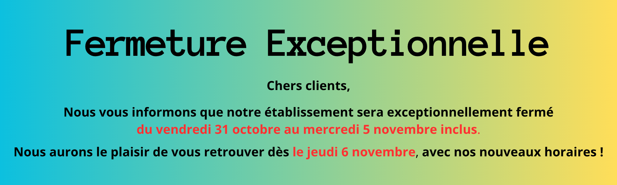 ATTENTION nouveaux horaires du magasin à partir du 1er Novembre 2025